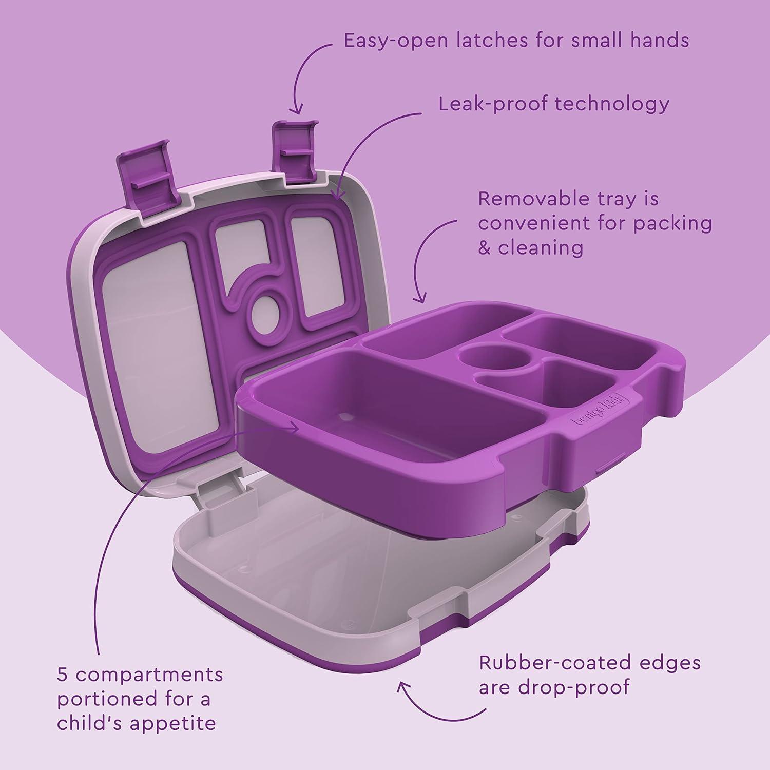Bentgo® Kids Bento-Style 5-Compartment Lunch Box With Kids Reusable Plastic Utensils (Purple)