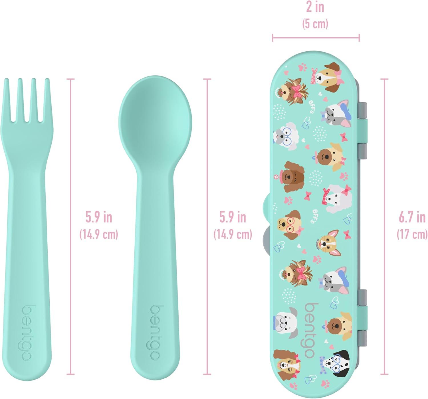 Bentgo Kids Utensil Set – Reusable Plastic Fork, Spoon & Storage Case – BPA-Free Materials, Easy-Grip Handles, Dishwasher Safe – Ideal for School Lunch, Travel, & Outdoors (Blue)(Puppy Love)
