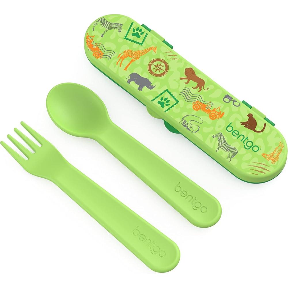 imageBentgo Kids Utensil Set  Reusable Plastic Fork Spoon ampamp Storage Case  BPAFree Materials EasyGrip Handles Dishwasher Safe  Ideal for School Lunch Travel ampamp Outdoors BlueSafari